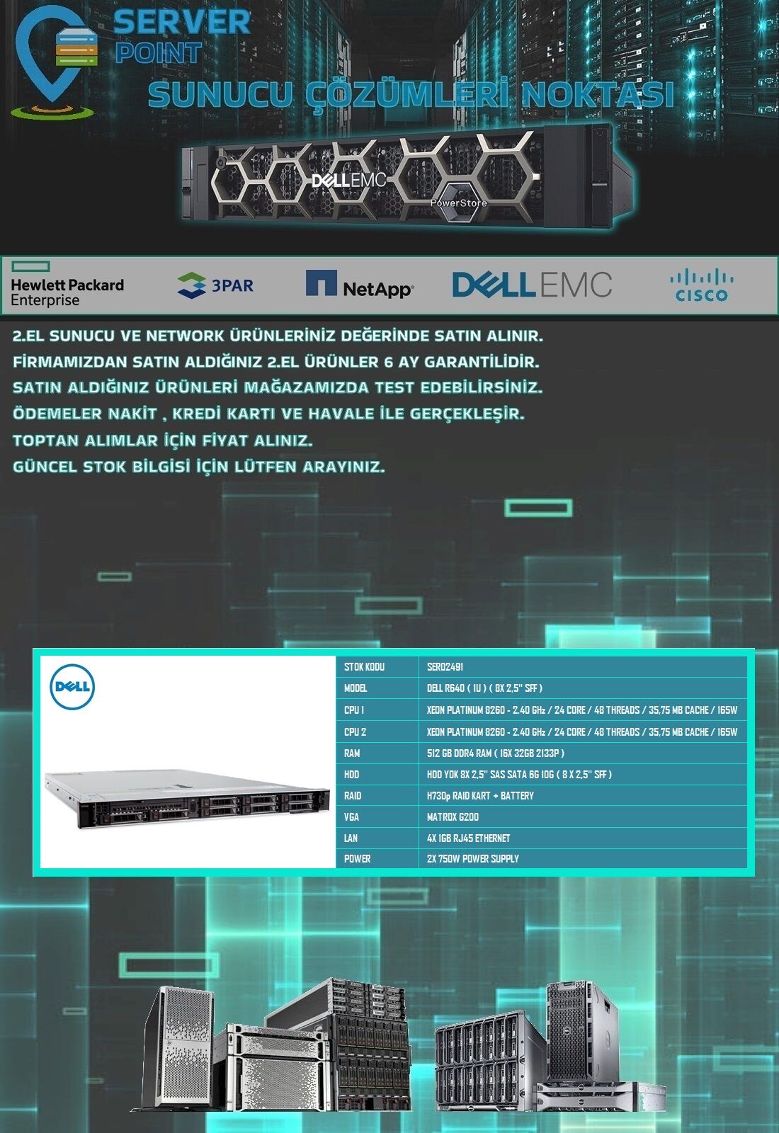 2.EL SERVER DELL R640 // PLATINUM 8260 2X CPU 512GB DDR4 RAM H730p RAID 2X 750W POWER