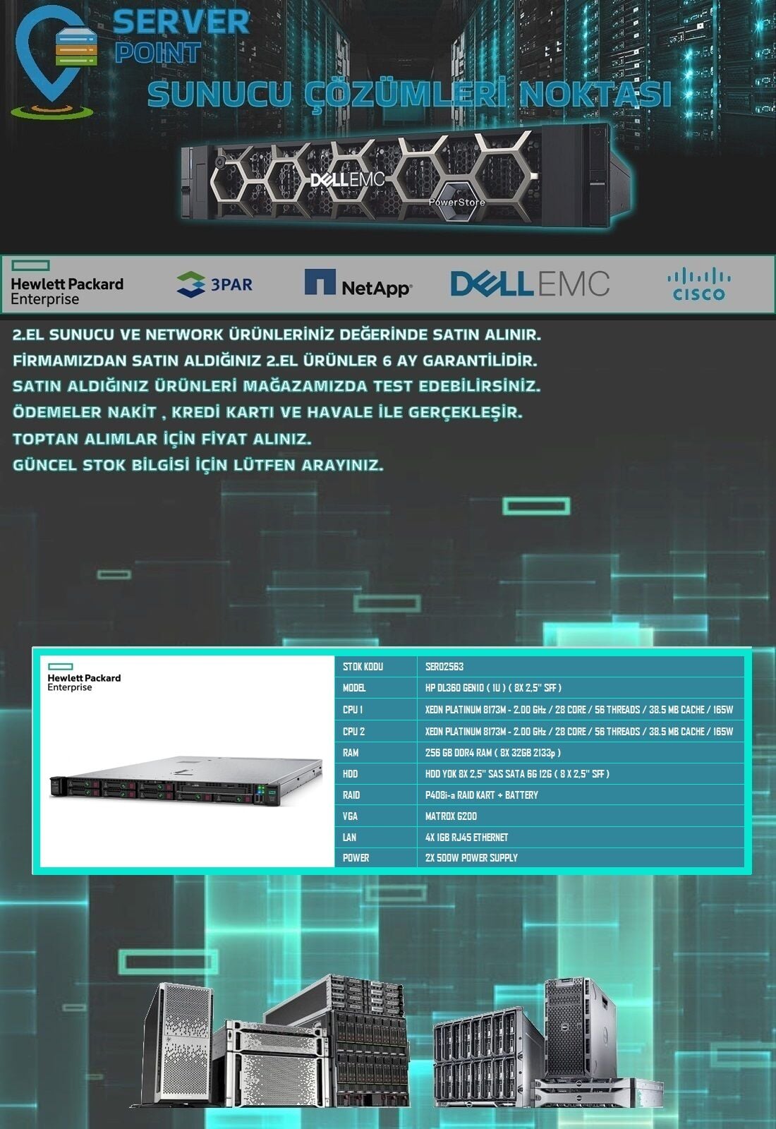 2.EL SERVER HP DL360 GEN10 // PLATINUM 8173M 2X CPU 256GB DDR4 RAM P408i-a RAID 2X 500W PWR